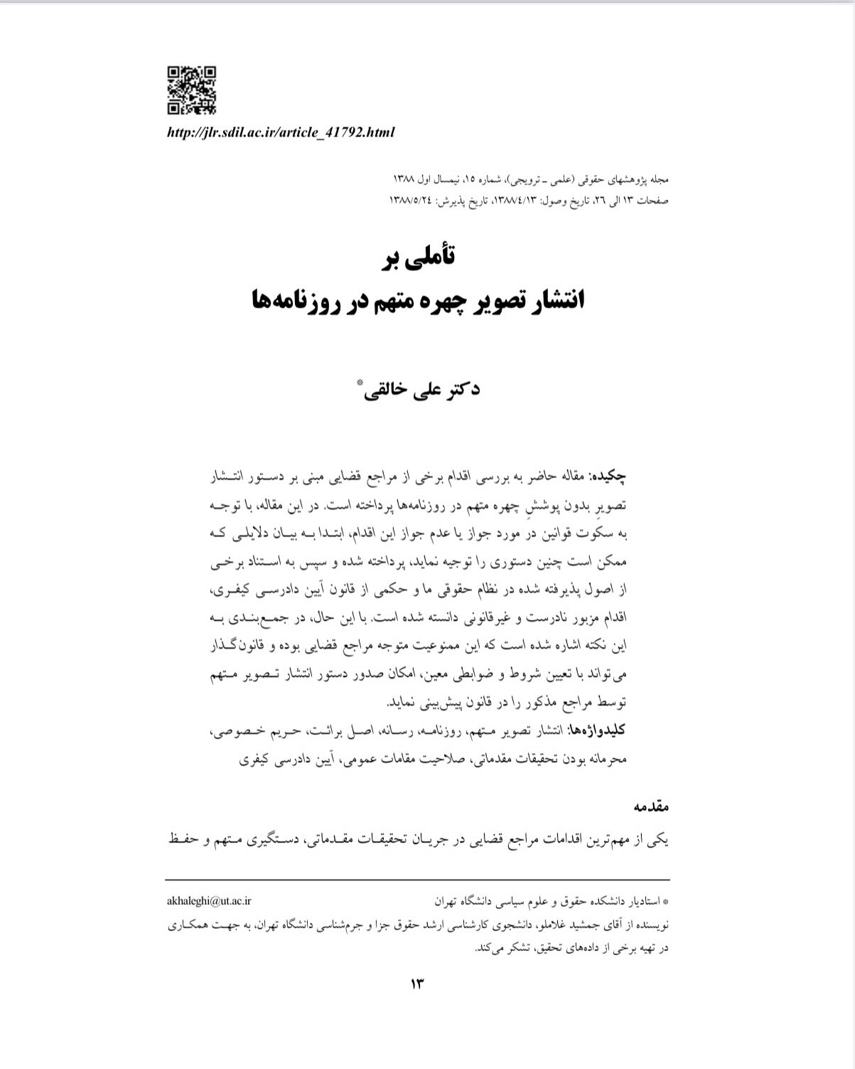 در برخی موارد دستگیری متهمان جرائم خشونت بار و سریالی توسط پلیس که اخبار آن رسانه ای و احساسات عمومی جریحه دار می شود، گاه پس از تشکیل پرونده در دادسرا و به دستور بازپرس تصویر چهره متهم برای شناسایی و مراجعه و شکایت بزه دیدگان منتشر می گردد. اما نکته ای که اخیراً جلب توجه می کند تفاوت تصویر چهره متهم از زمان دستگیری تا زمان انتشار تصویر او در رسانه هاست.