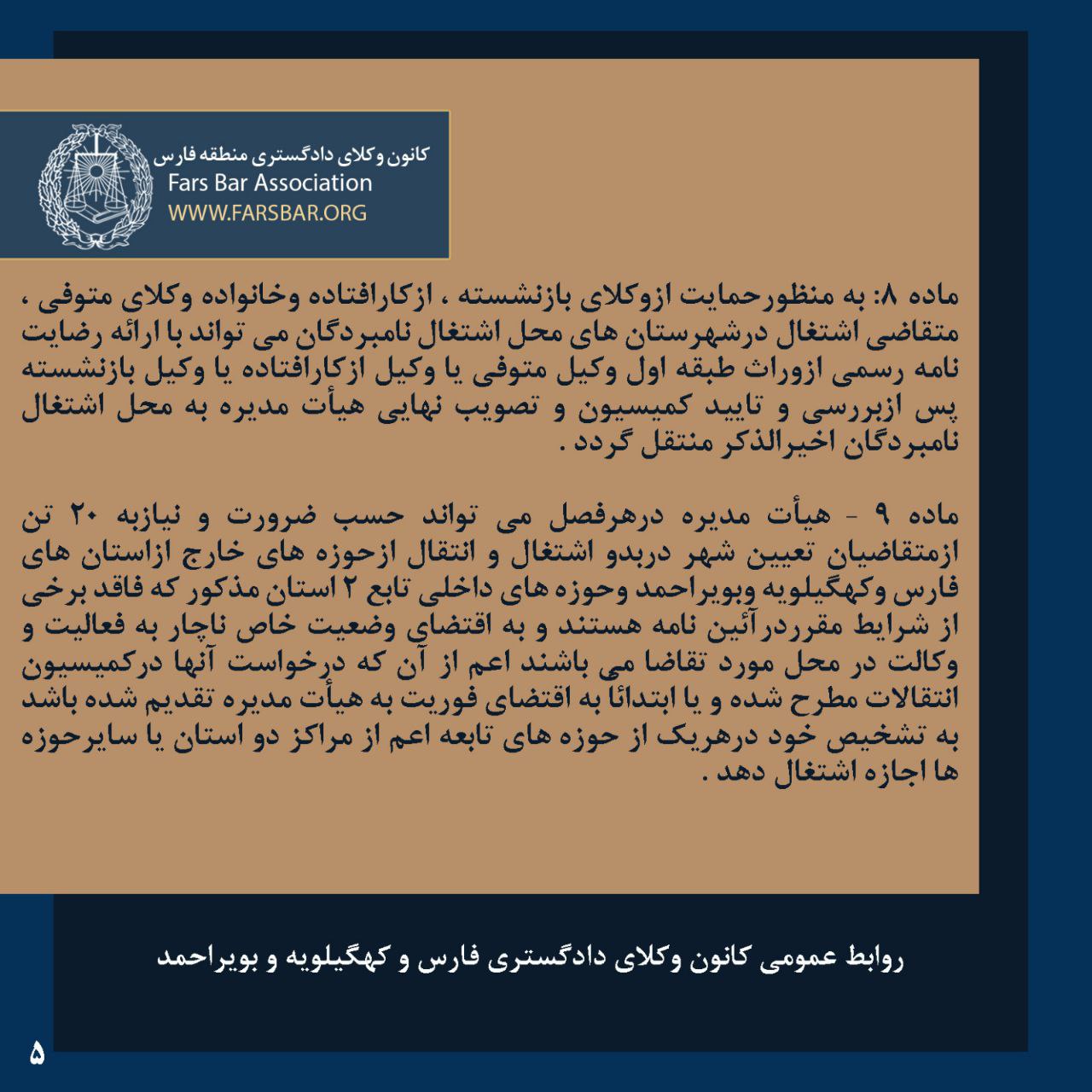آیین نامه انتقال و تعیین محل اشتغال وکلای عضو کانون وکلای دادگستری فارس