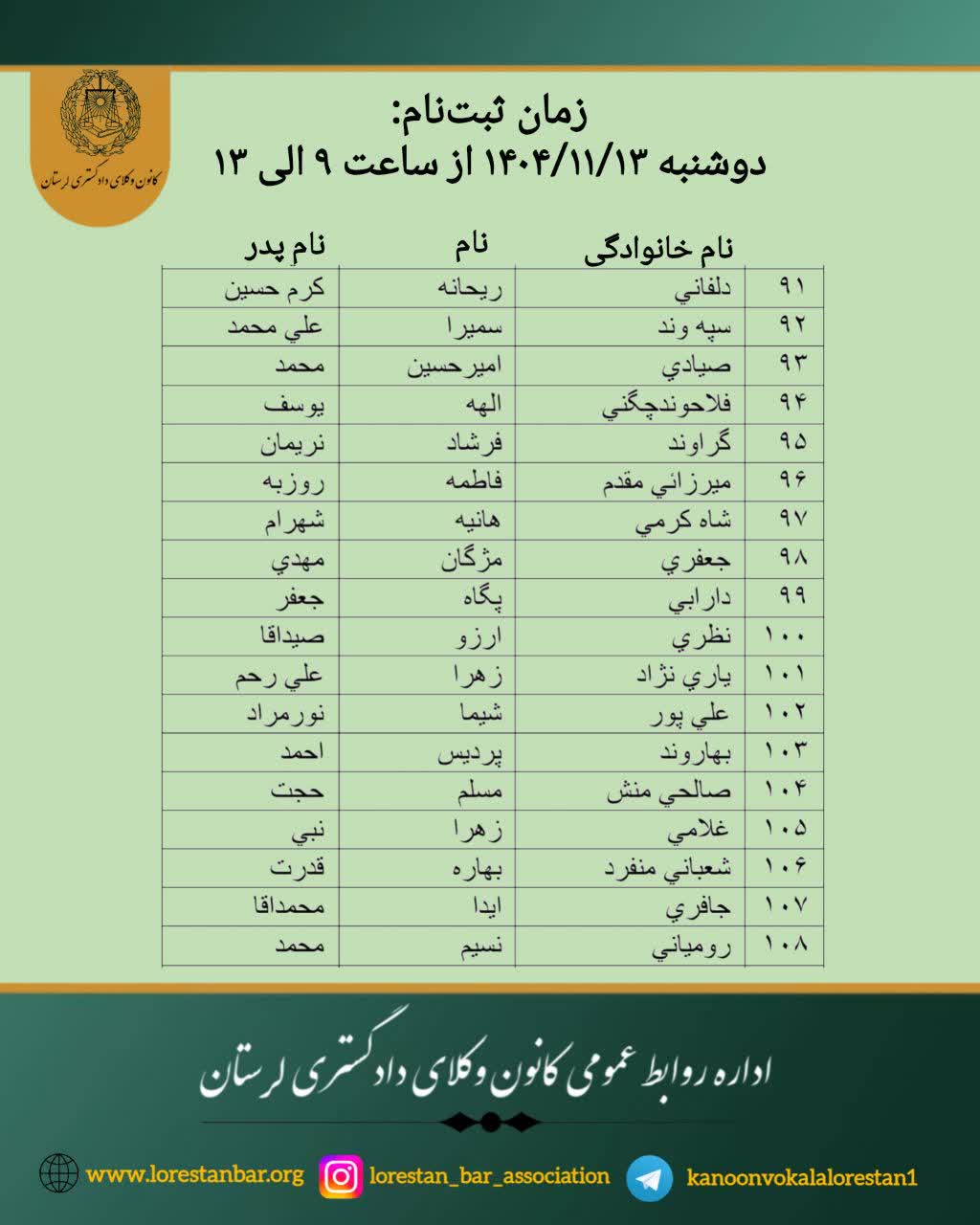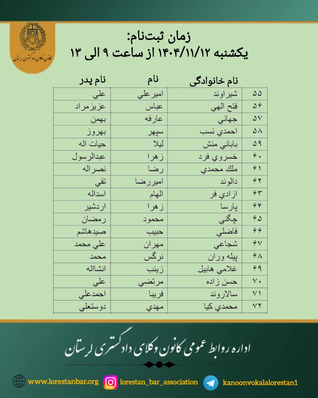 اطلاعیه نحوه ثبت نام پذیرفته شدگان کانون وکلای دادگستری لرستان در آزمون وکالت ۱۴۰۴