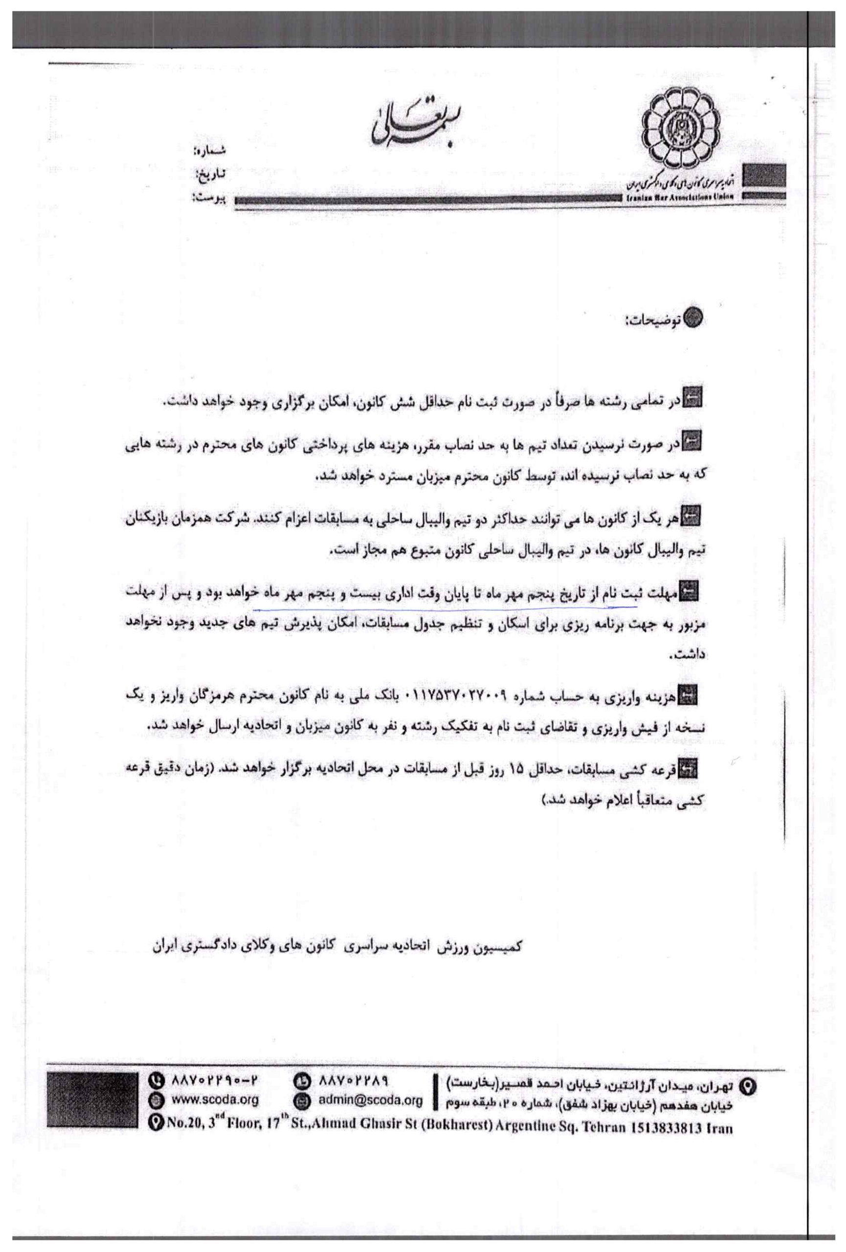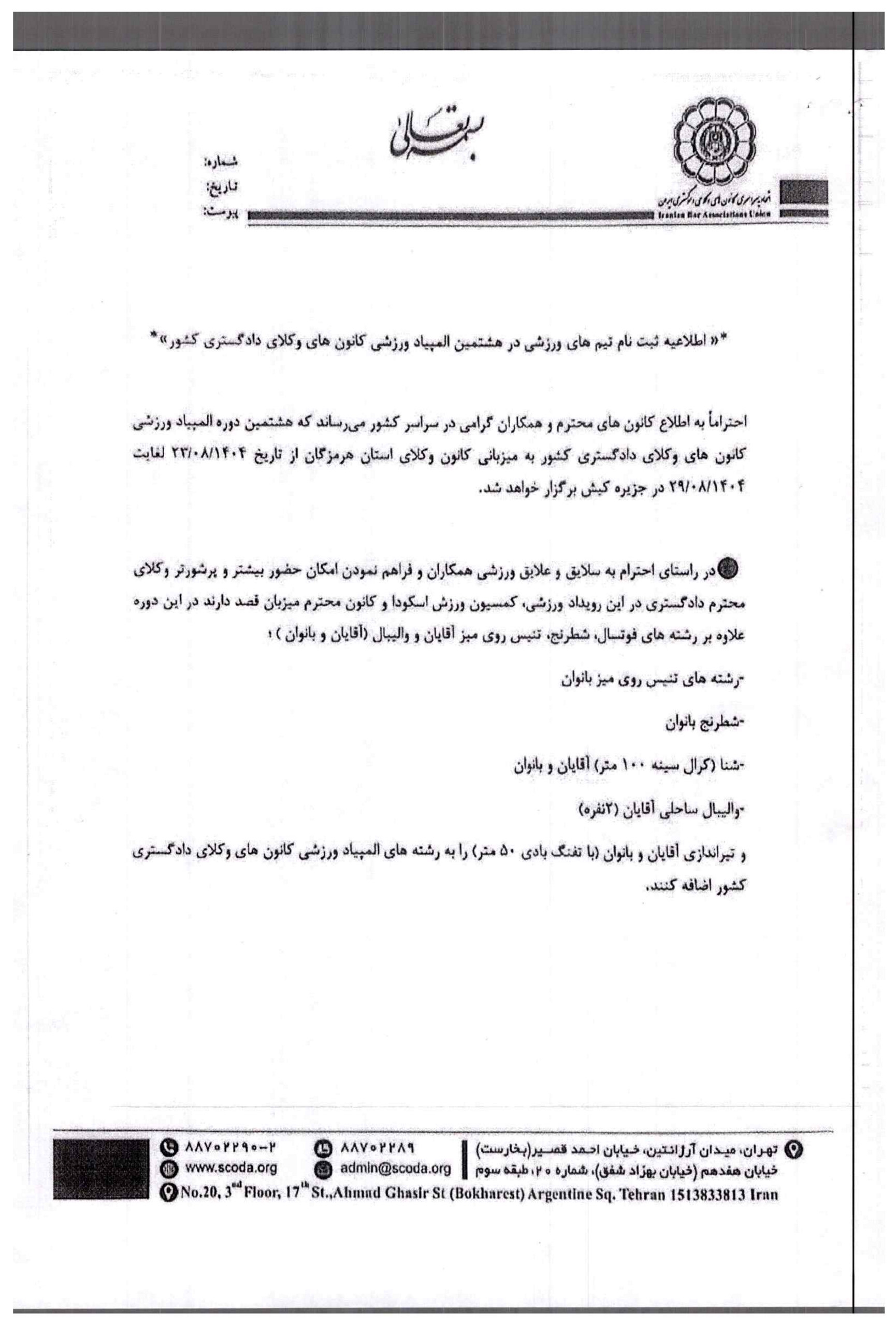 اطلاعیه ثبت نام تیم های ورزشی در هشتمین المپیاد ورزشی کانون های وکلای دادگستری کشور