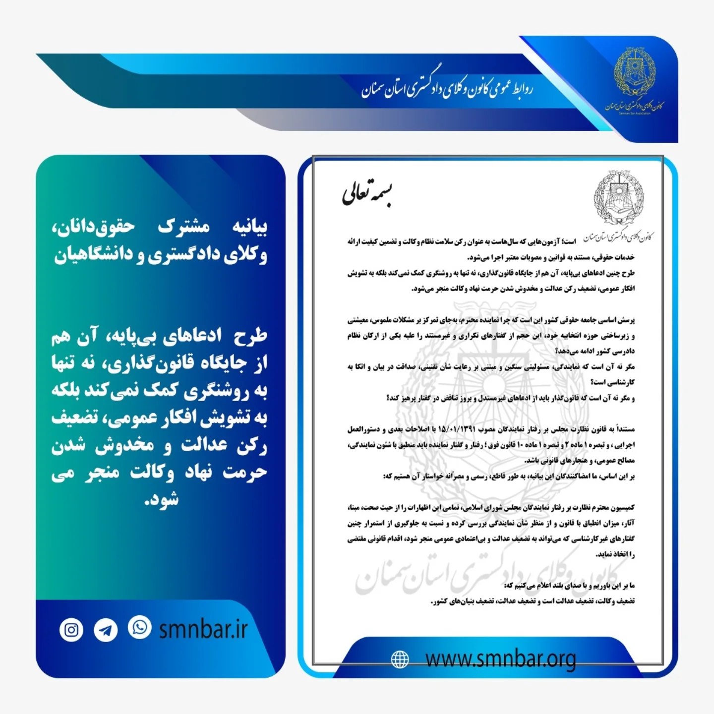 بیانیه مشترک حقوق دانان، وکلای دادگستری و دانشگاهیان