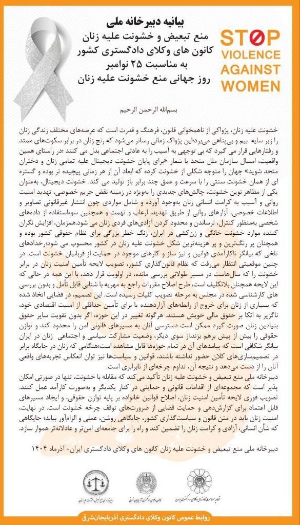 دبیرخانه ملی منع تبعیض و خشونت علیه زنان کانون های وکلای دادگستری ایران – آذرماه ۱۴۰۴