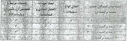جدول خلاصه نحوه ارائه خدمات بانکی برای عدم ایفای تعهد صادر کنندگان