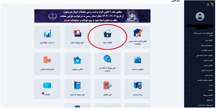 پس از ورود، در صفحه باز شده اصلی وارد قسمت اطلاعات پایه می شویم. طبق تصویر زیر: