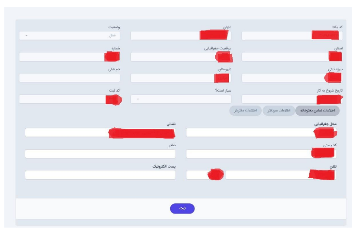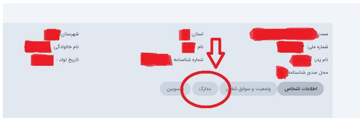 بعد از تکمیل فیلدهای این دو قسمت وارد قسمت اطلاعات اشخاص میشویم و پس از آن وارد بخش مدارک میشویم.