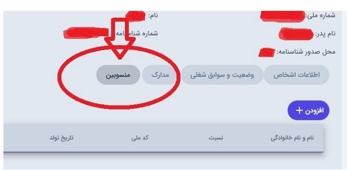 طبق لیست مدارک را آماده و تکمیل می کنیم و سپس در بخش منسوبین افراد تحت تکفل را اضافه میکنیم.