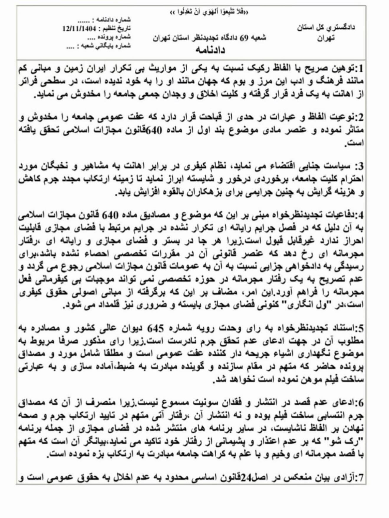 تجدید نظر خوانده: دادسرای فرهنگ و رسانه تهران