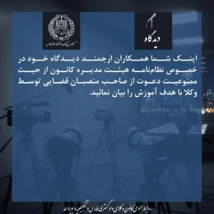 فراخوان کانون وکلای دادگستری منطقه فارس برای اعلام نظر درباره بند ۷ نظامات این کانون مبنی بر ممنوعیت دعوت از صاحب منصبان قضایی توسط وکلا با هدف آموزش