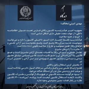 سایر نظرات مخالف و موافق را در صفحه اینستاگرام کانون وکلای دادگستری منطقه فارس ببینید.